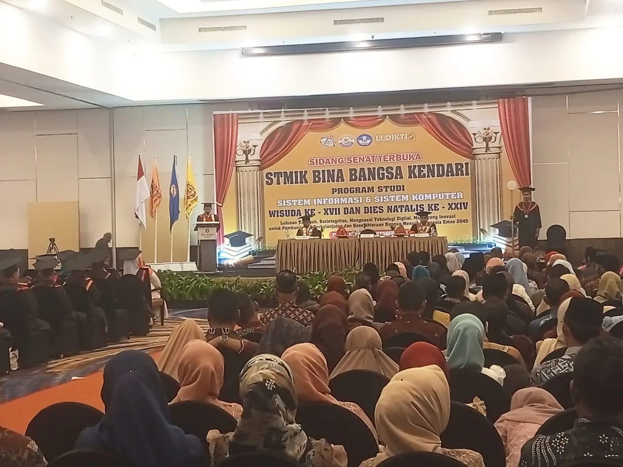 KENDARI, KABARTERKINISULTRA.COM – STMIK Bina Bangsa Kendari melaksanakan giat Wisuda ke XVII dan Dies Natalis XXIV bertempat di salah satu hotel di Kota Kendari, Senin 6 Oktober 2025.