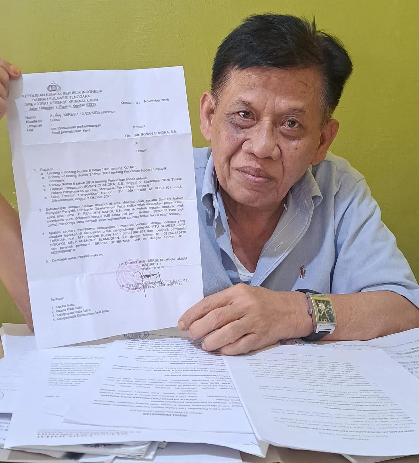 Eks Anggota DPRD Sultra Ruslimin Mahdi Dilapor ke Polda Sultra Soal Kasus Dugaan Pengrusakan Bangunan