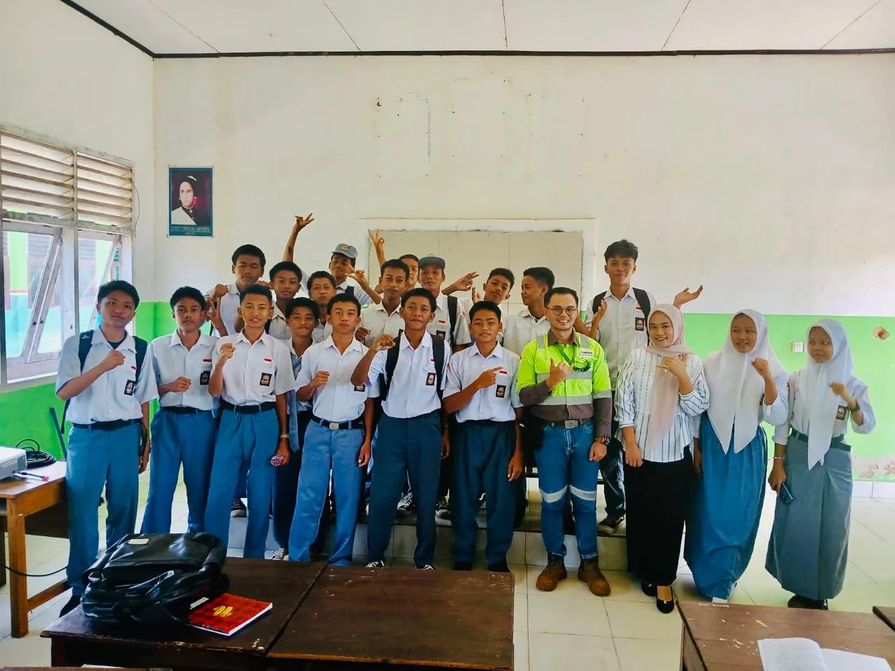 Di sekolah itu, Yovi membagikan pengalaman dan pengetahuannya tentang dunia pertambangan nikel dan metode penambangan modern.