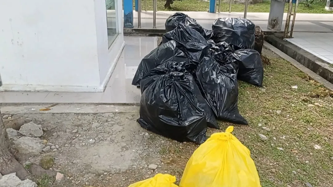 Masalah dimaksud yakni, tumpukan kantong sampah terlihat menggunung di sejumlah titik depan gedung perawatan rumah sakit, Kamis (1/1/2026), diduga akibat belum siapnya perusahaan baru penyedia jasa cleaning service yang ditunjuk manajemen rumah sakit.