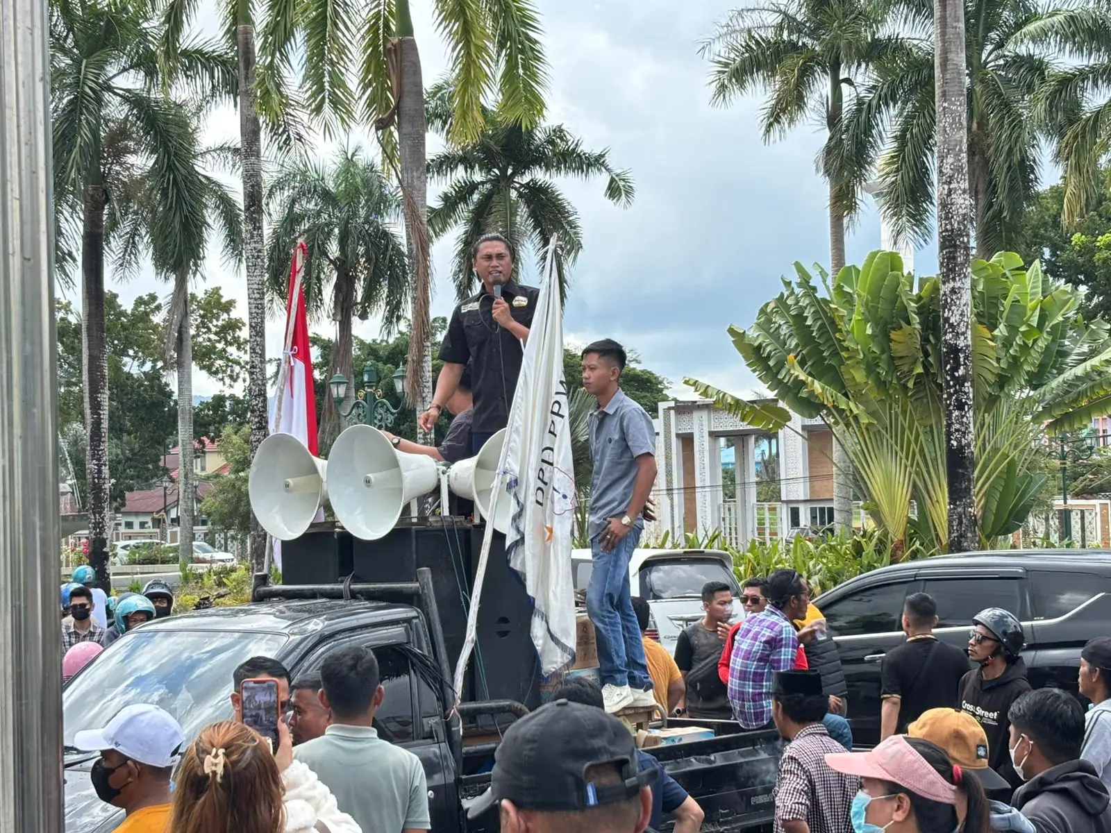 ‎Di lokasi yang sama, Perwakilan massa aksi lainnya, Ikbal mengungkapkan bahwa dalam kasus yang tengah diselidiki Kejati Sultra, penyidik telah menetapkan sejumlah tersangka namun Burhanudin hingga kini masih bebas bahkan tengah duduk di kursi pemerintahan.