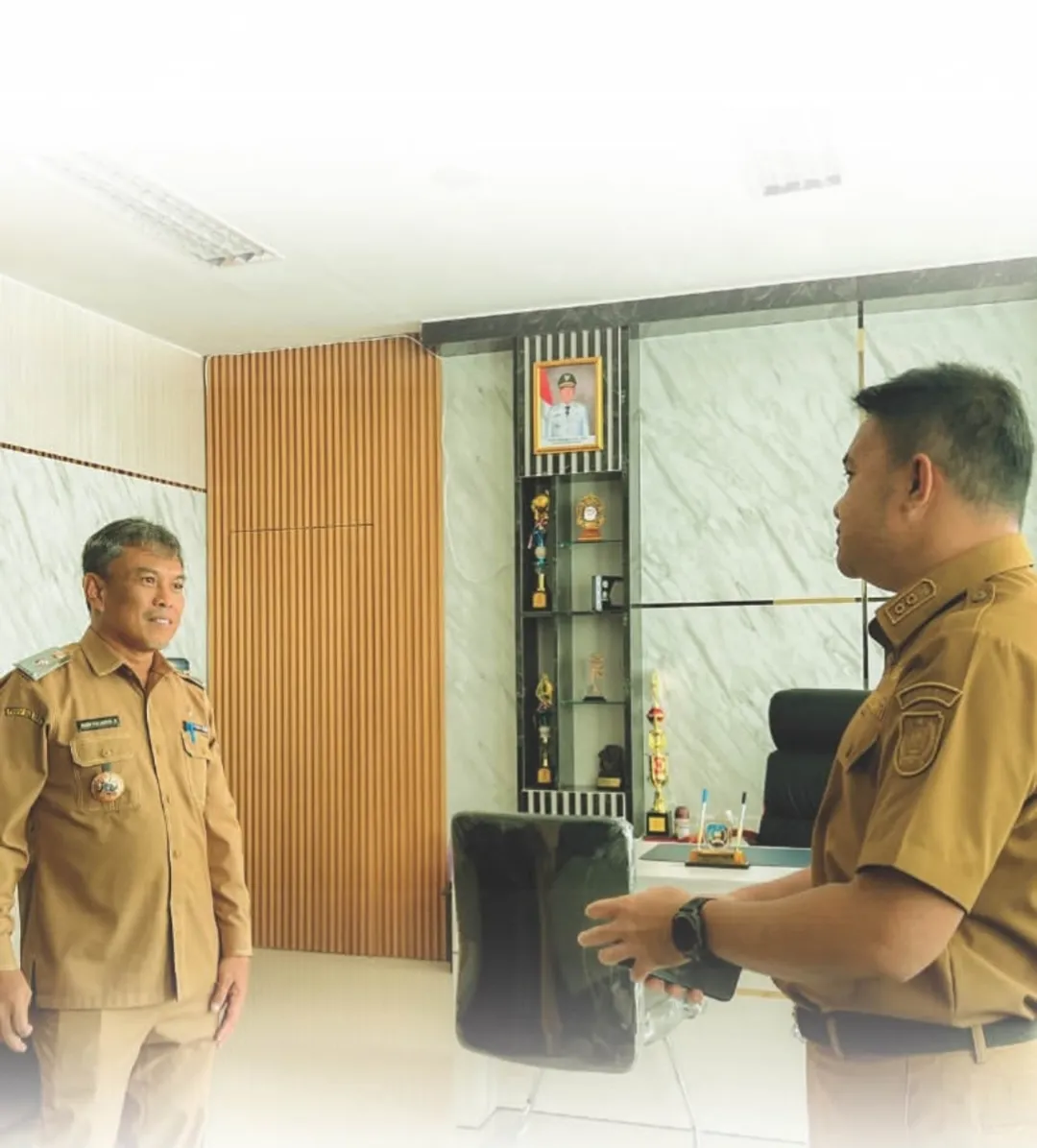 Kadis PTSP Konsel, Budi Yuliarto Silondae menunjukkan ruangan pejabat struktural Dinas PTSP Konsel kepada Wabup Wahyu Ade Pratama Imran. Foto: Istimewa